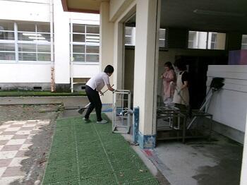校内すべてのクーラーのフィルター清掃に来てくださいました。