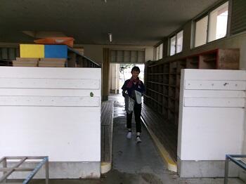 夏休みの川東小7 渡り廊下の工事