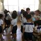 その後、運営委員の皆様に、授業を参観していただきました。運営委員の皆様は、子供達の様子を微笑ましく眺めていらっしゃいました。ちょうど、1年生の体育の授業で、前転がスムーズにできた児童の姿を見て、小さく拍手をして喜んでいらっしゃいました。