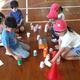 そして、迎えた当日。6年生が話し合って考えたルールを2年生に説明して、陣取りゲームとクイズをして遊びました。