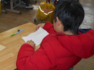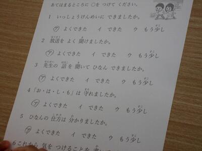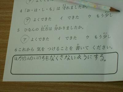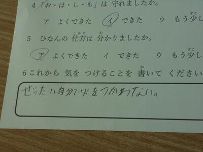 教室に戻り、訓練をふりかえります。大切なことをしっかりと学ぶことができたようです。