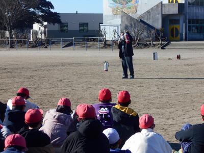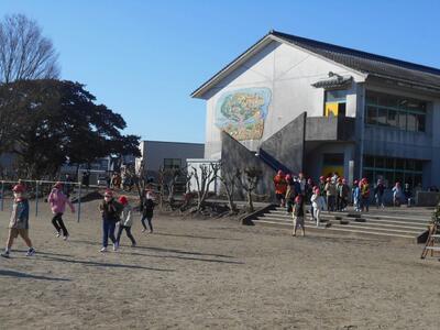 非常ベルが鳴り、教頭先生の放送や担任の指示に従って運動場に避難します。