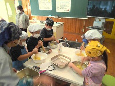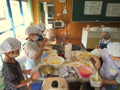 無事に出来上がり、試食です。子どもたちは、とてもおいしかったと大喜びでした。