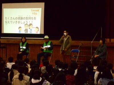 参加してくださった皆さんからは、「自分たちも子どもたちから元気をもらえる。」「学校に呼ばれるのが楽しみ。」「登校の見守りは自分の日課になっている。今後もずっと続けたい。」とお話をいただきました。