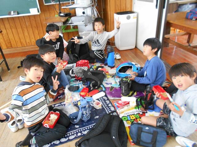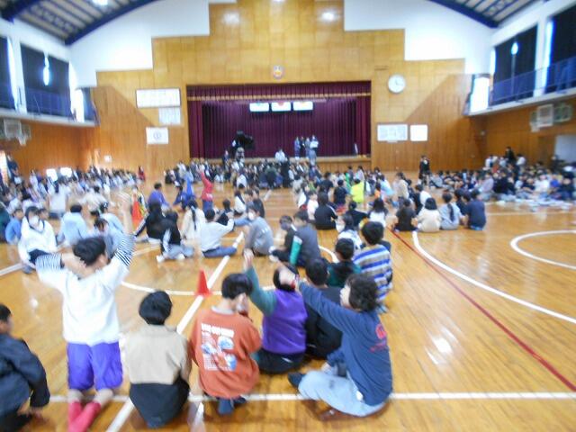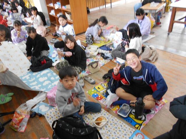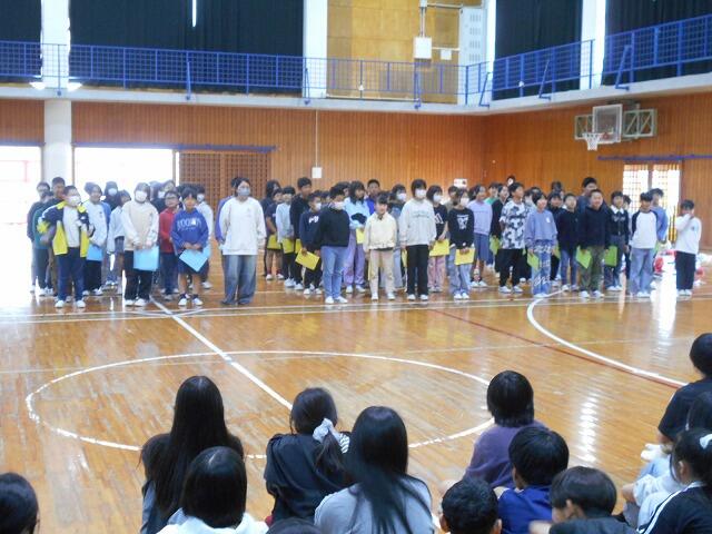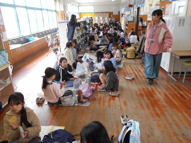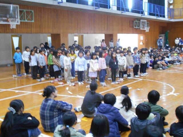 本日は、お別れ遠足・お別れ集会を行いました。計画では、横市市民広場に徒歩で行く予定でしたが、お昼ごろから雨の予報のため、校内遠足に変更しました。校内遠足でも子どもたちは、体育館や運動場、教室で学年・学級の友達と楽しそうに過ごしていました。