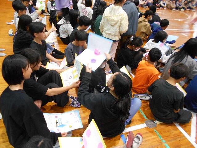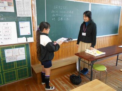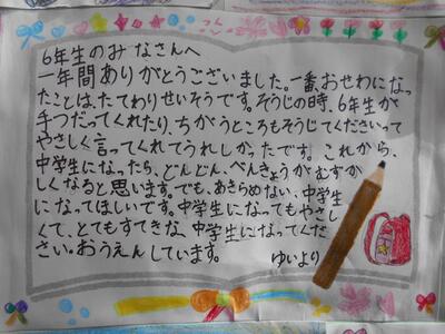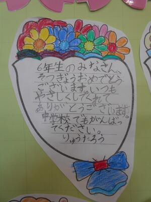 4年生は、6年生にメッセージカードを作って手渡しました。カードをもらった6年生も喜んでいます。