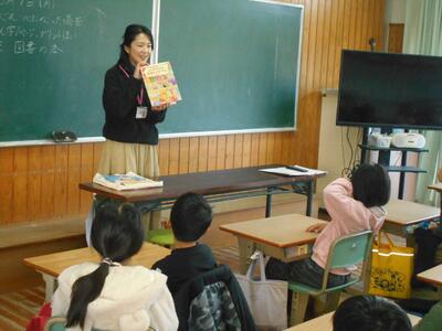 2年生の様子です。今日も子どもたちの興味がありそうな絵本を選んできてくださいました。