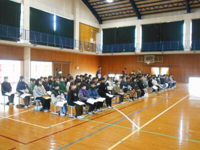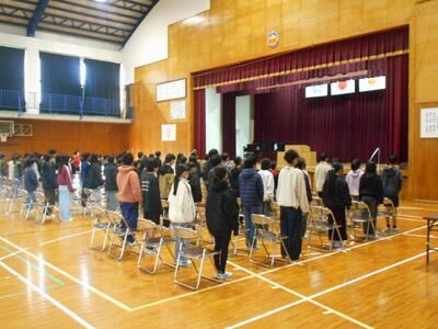 生徒指導の児玉先生からは、次年度に向け生活習慣を見直すことを伝えていただきました。特に、「右一静歩」の徹底を指導してもらいました。