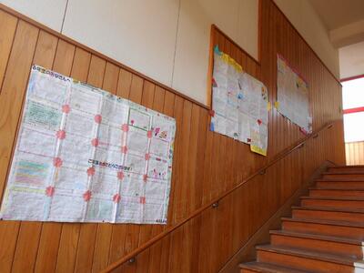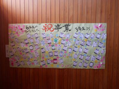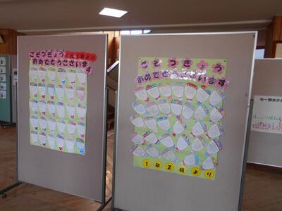 1年生から4年生は、クラスごとに6年生への感謝の気持ちを記して掲示しています。