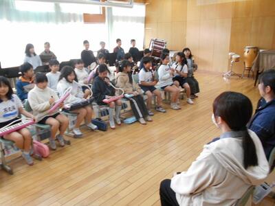 リコーダーや鍵盤ハーモニカ、木琴、大太鼓等、様々な楽器で演奏してくれました。
