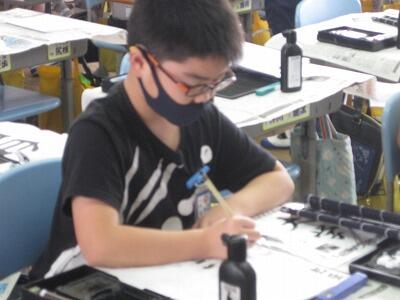 9月2日(木)、5年生が習字をしていました。「白馬」の2文字のバランスを考えながら、背筋を伸ばして集中して取り組んでいます。きっと美しい字が書けたことでしょう。
