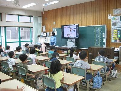 6月28日(月)から30日(水)まで、自由参観日です。今日の午前中は保護者や地域の皆様が60名ほど来校されました。また、本日から3日間、非行防止教室で講師として警察署の方も来校されます。今日は、1・2年生を対象に安全にすごすためのきまりや約束などについて教えていただきました。