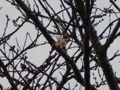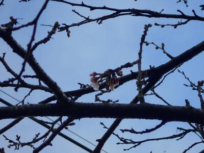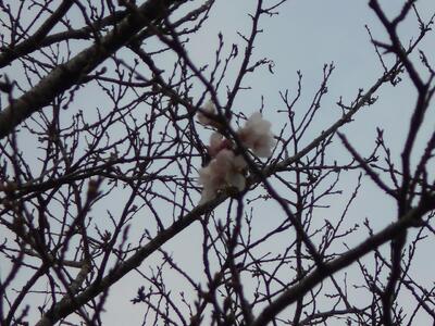 今朝、桜の木を確認したところ・・・5輪の開花を確認しました。