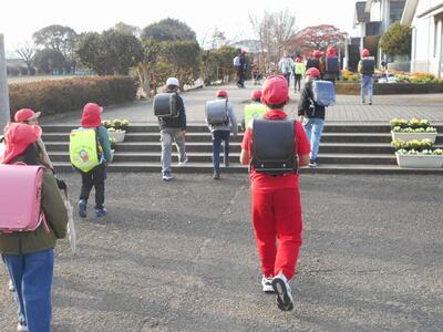 子どもたちはいつも通り登校してきますが、6年生がいないので、少し寂しい登校の様子です。しかし、6年生からしっかりと引き継いだ5年生が、班長として下級生をしっかりとリードする姿を見て、とても頼もしく思いました。