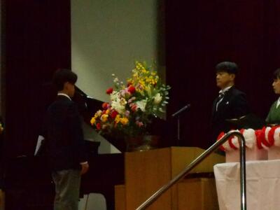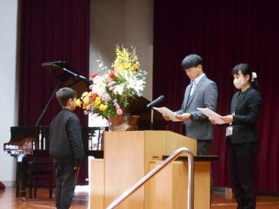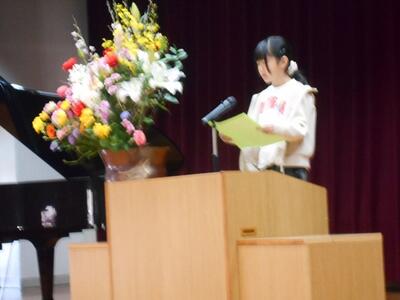 続いて、作文発表です。1年間を振り返り、次の学年への思いを語ってくれました。