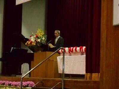 PTA会長の、温かくユーモアあふれる祝辞で、式がさらに盛り上がりました。