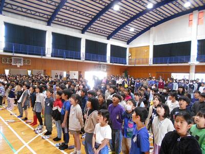 本日は、お別れ遠足・お別れ集会を行いました。計画では、横市市民広場に徒歩で行く予定でしたが、お昼ごろから雨の予報のため、校内遠足に変更しました。校内遠足でも子どもたちは、体育館や運動場、教室で学年・学級の友達と楽しそうに過ごしていました。