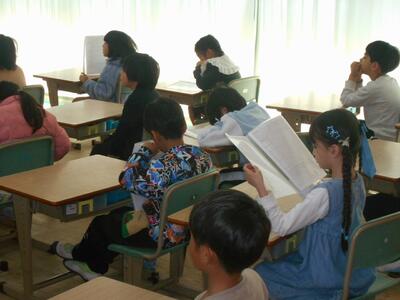 月曜日の朝の読書の時間に、読み聞かせボランティアの「メルヘンの会」、紙芝居ボランティアの「まねきねこの会」のみなさんが来校してくださいます。