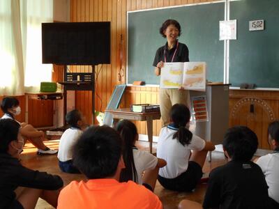 メルヘンの会の皆さんです。今日は6年生に読み聞かせを行ってくださいました。子どもたちの学年に応じた本を選んでくださるので、子どもたちも真剣に聞いています。