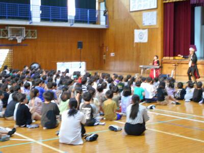 今日の朝の活動は、読書タイム。読み聞かせボランティアのメルヘンの会のみなさんと紙芝居のまねきねこの会の皆さんが来校してくださいました。