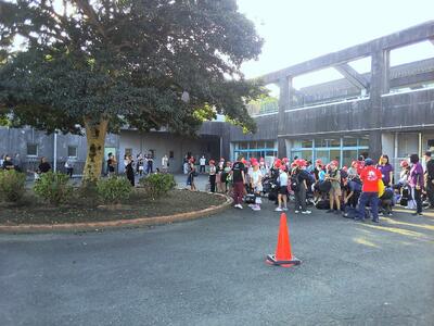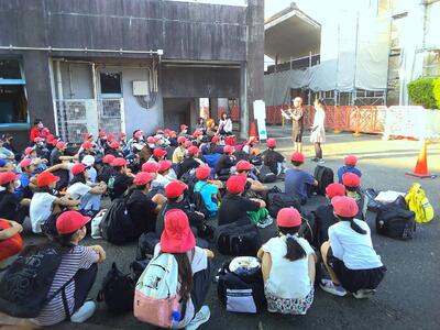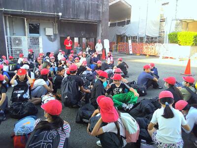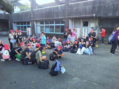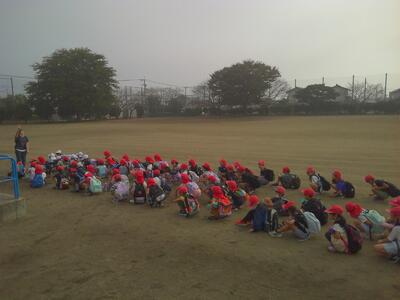出発式に向けて、子どもたちは続々と集合しています。みんな笑顔です。