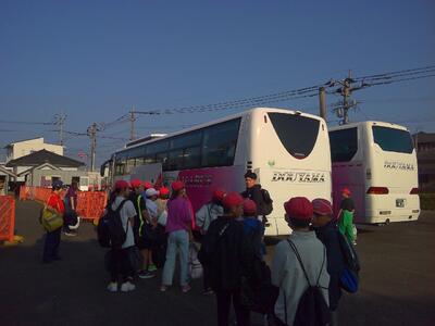 トイレを済ませた後、バスに乗り込みます。いよいよ出発です。