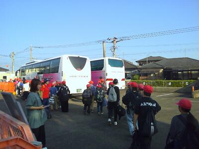 各学級で遠足の説明や諸注意を確認し、バスに乗り込みます。みんな笑顔です。