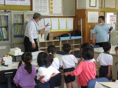 授業中でしたが、子どもたちは地域で見かける方が来られたことに、驚いたり、喜んだりしていました。ある委員の方は、「あの子は、幼稚園の時から知っているんだよ。成長したよ。」と教えていただきました。