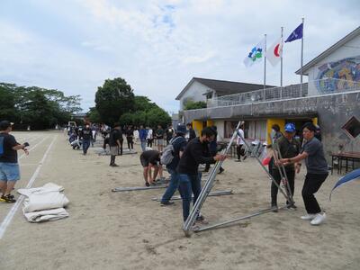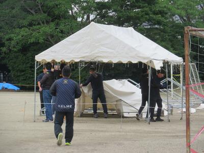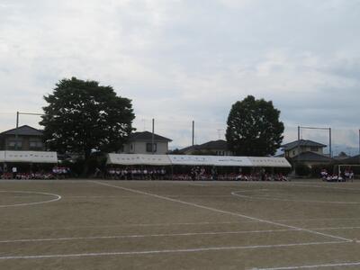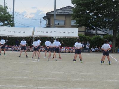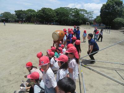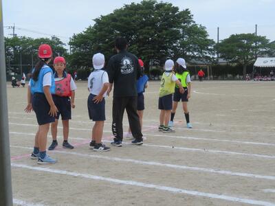 小林会長からのお話です。「がんばろう!」の掛け声で、子どもたちを元気づけてくださいました。