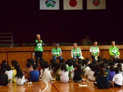 ちょうど、横市地区の民生委員の皆さんが朝の挨拶運動をしてくださっていたので、その様子も見られました。