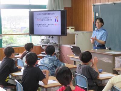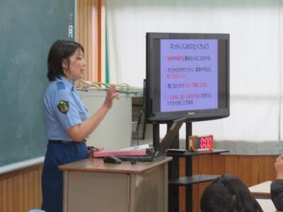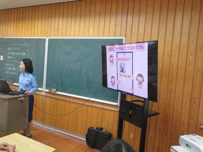 保健委員会の発表の後は、メディア安全指導員の横田先生から、5・6年生児童及び保護者の方に講話をしていただきました。