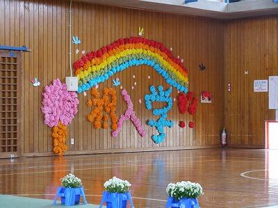 6年生が3校時に会場づくりをし、ほとんどできあがっていました。