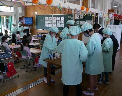 給食は、5・6年生が配膳をしてくれます。