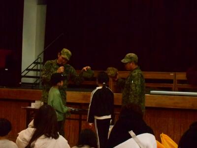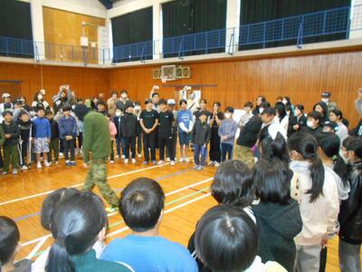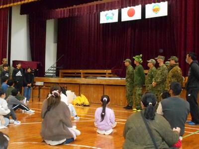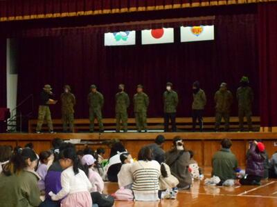 開会式です。親父っどんの会の岩永会長と河口PTA会長の御あいさつの後、隠れてくださる自衛隊の皆さんの紹介がありました。