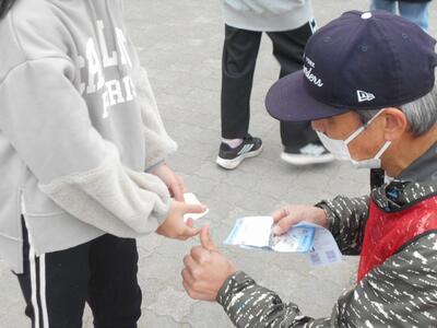 見つけた子どもたちには、役員さんがシールを貼ってくださいました。