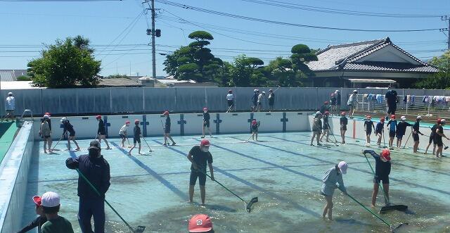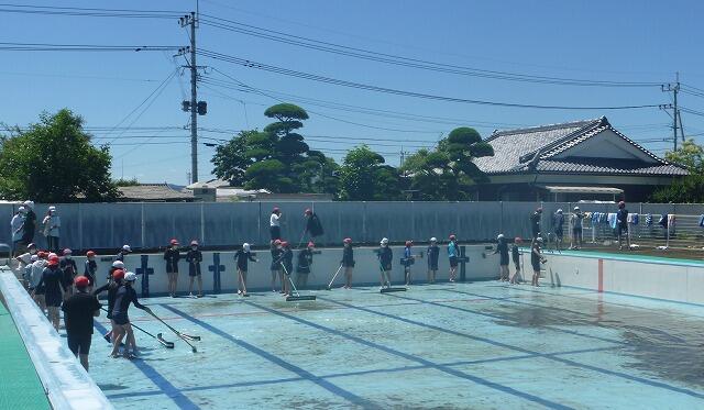 7月1日(金)、6年生がプール掃除をしました。「水泳がとても楽しみです!」と一生懸命掃除に取り組んでいました。例年よりも梅雨の期間が短く暑さが厳しくなりました。熱中症とコロナ対策に努めながら、楽しい水泳学習ができるように留意していきます。