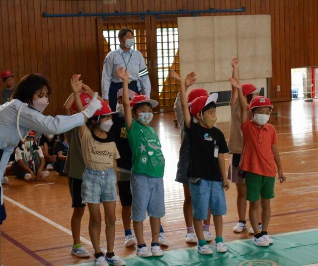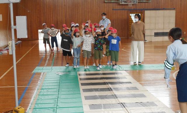 7月5日(火)、交通安全協会から6名が来校されて、1~3年生の交通安全教室がありました。雨のため、体育館で各学年ごとに時間を分けて実施しました。安全な横断歩道や信号、踏切の渡り方等について、体育館のコースを実際に歩いて、歩行する時の 注意点を教えてもらいました。