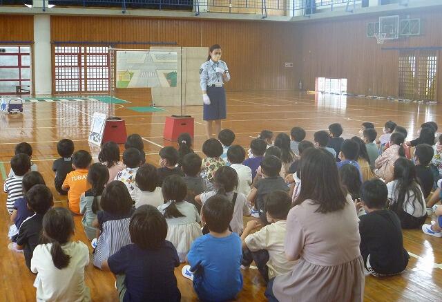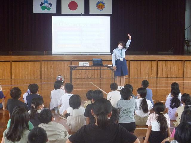 6月29日(水)、都城警察署から3名の方を講師に迎えて、3年生から6年生を対象に非行防止教室がありました。夏休みに向けて、犯罪やトラブルに巻き込まれないために注意することを教えていただきました。