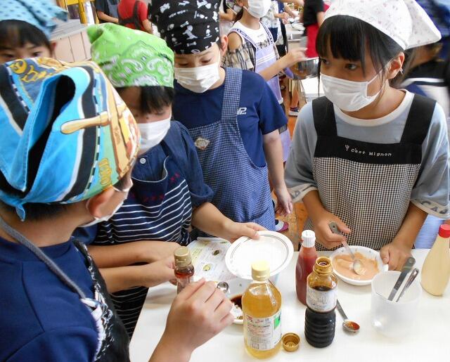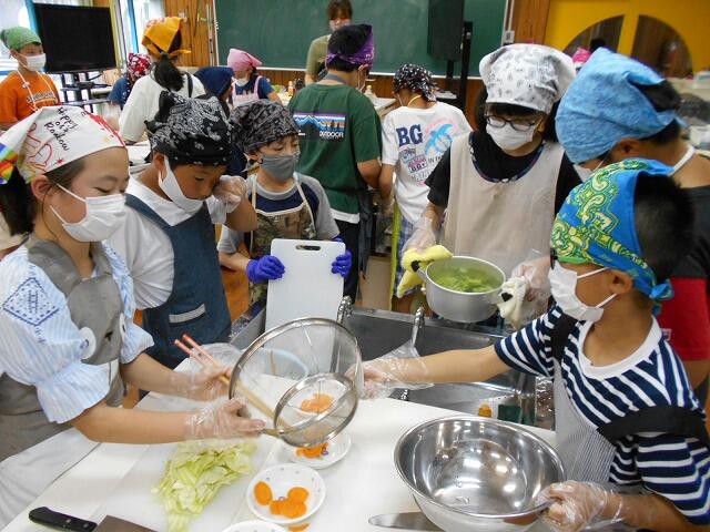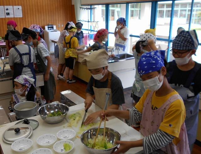 先週から今週にかけて5年生が家庭科の調理実習で「ゆで野菜サラダ」をつくりました。初めて包丁で野菜を切る子供もいて、ドキドキしながらゆっくりと切っていました。にんじん、ブロッコリーなどカラフルなサラダと手作りドレッシングができあがりました。自分たちで作ったものはよりおいしく感じるのか笑顔でいただいていました。