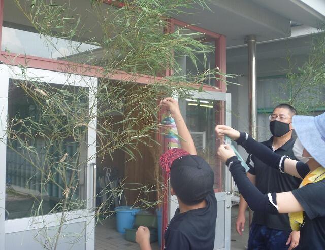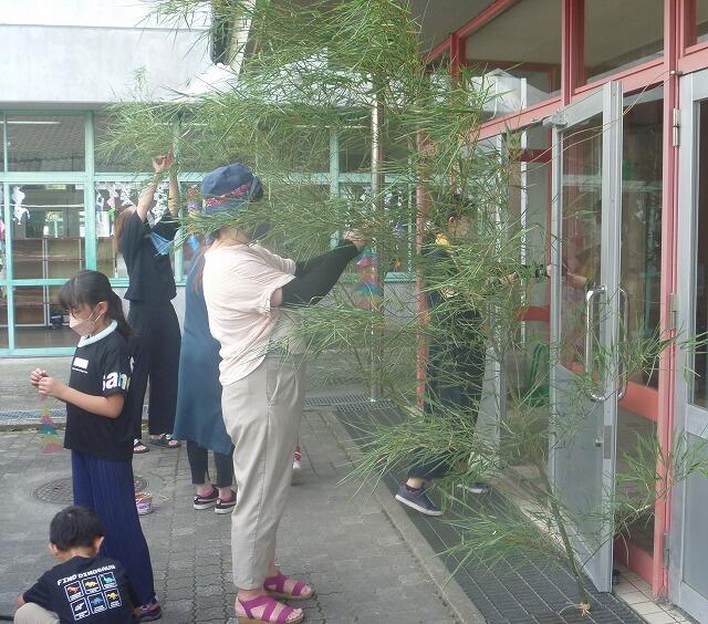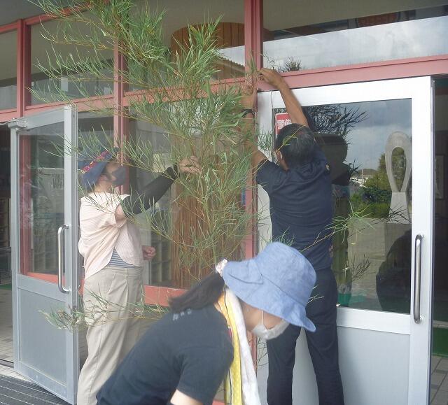 7月7日(木)の放課後、PTA役員の皆様が児童玄関に笹を設置してくださいました。成人教育部の企画による「星に願いを☆短冊に願いをかこう」の準備です。短冊(セロファン紙)とこよりが配られていますので、ぜひ親子で短冊を飾ってみませんか。(期間:7月8日から7月21日)