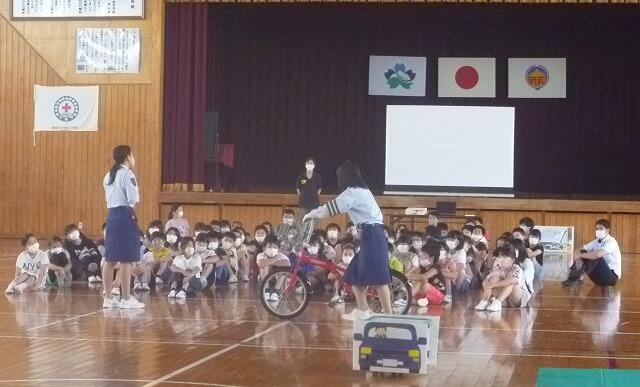 7月8日(金)は、4~6年生を対象に正しい自転車の乗り方を中心とした交通安全教室を行いました。熱中症に留意して、体育館で大型扇風機を回しながら実施しました。自転車の整備のポイントや交差点で気を付けることなどを、実演や動画を交えて教えていただきました。