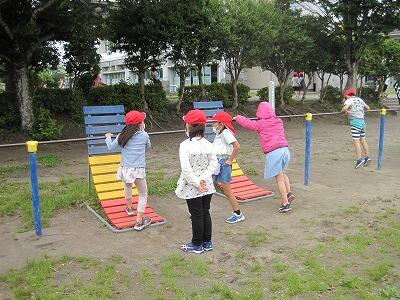 5月11日(火)は、久しぶりの昼休みでした。晴天の下、運動場では子どもたちが楽しそうに遊んでいました。1年生もジャングルジムや鉄棒などでうれしそうに遊んでいました。シロツメクサをつんで首飾りを作っている子もいました。