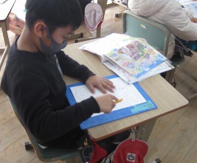 1月26日(水)、2年生が図工の学習でカッターナイフを使っていました。初めて使う子どもが多く、最初は「こわいなあ」と少し不安な表情でした。先生からカッターナイフの持ち方や使い方を教えてもらって、まずは真っ直ぐな線を切る練習をしました。できた!と嬉しそうな声が上がっていました。