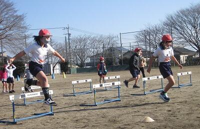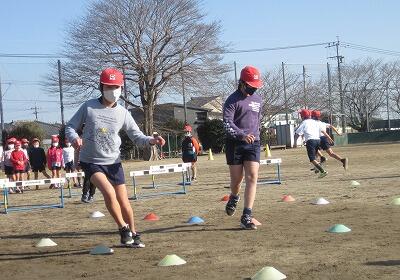 2月1日(火)、2年生が運動場で体育をしていました。ハードルを跳んだり、ジグザグに走ったり、後ろ向きに走ったり、なわとびをしたりと、思いっきり体を動かしていました。昼休みがなく外での遊びが制限されている中、思いっきり運動できて楽しそうでした。