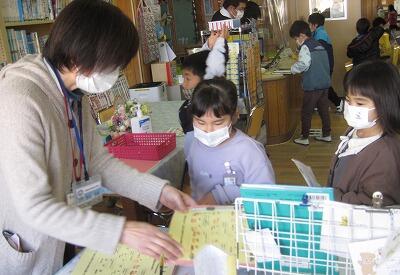 2月3日(木)、1月に実施していた「図書館すごろく」が2月10日まで延長されることになりました。本を1冊かりたら、1マス進みます。20マス達成であがりになり、すてきな景品のプレゼントがあります。図書館サポーターの野村先生手作りのマグネットと折り紙のしおりです。1年生が図書の時間に景品をもらって嬉しそうでした。