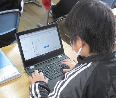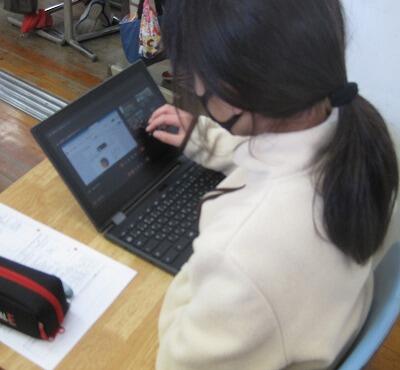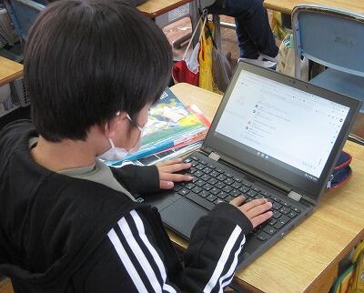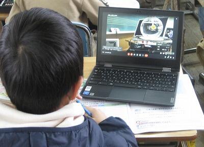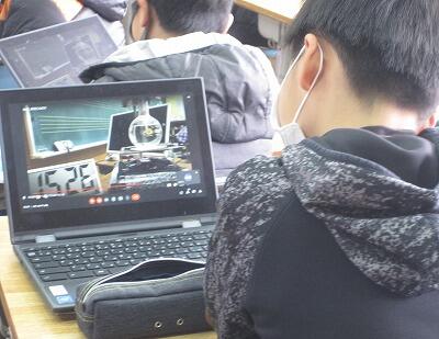 2月8日(火)、実験や話合いなど感染リスクが高い学習活動が制限されている中、タブレットPCを活用して工夫した授業をしています。4年生では「水のあたたまり方」の実験で、先生が撮影した実験の様子をタブレットPCで観察しながら記録をしていました。5年生では、国語の感想交流で、グーグルのチャット機能を使ってグループごとに意見交流をしていました。