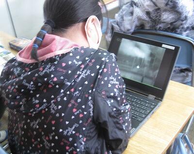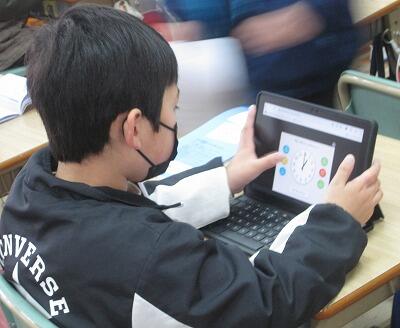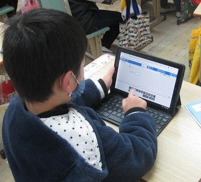 2月10日(木)、今日もコロナ禍でタブレットPCが大活躍です。1年生も自分一人でログインして、算数のドリル学習に取り組んでいます。6年生は、社会の学習で動画や資料にアクセスして調べています。しーんと静かな教室に、タイピングの音だけが響いています。