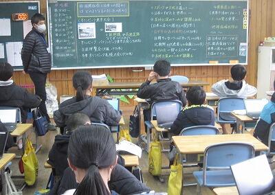 1月28日(金)、感染対策のため教室や学習の場の換気、可能な限りのソーシャルディスタンスの確保に努めています。本校で1番学級の人数が多い5年生の教室をのぞくと、オープンスペースにはみ出しています。集中できるように棚で仕切って学習に取り組んでいます。