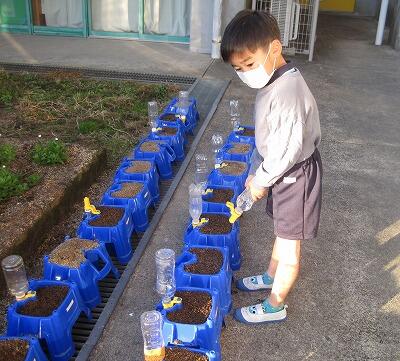 12月15日(水)、朝登校すると花のお世話をしている子をよく見ます。1年生はチューリップの球根を植えたので、毎朝芽がでていないか楽しみに水やりをしています。今朝は「○○さんの芽がでてます!」と教えてくれました。1ミリくらいの小さな芽を発見し、大喜びでした。