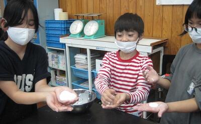 12月21日(火)、先週5年生が理科の学習でスライムを作っていました。かたくり粉に洗濯のりを混ぜて、なめらかな感触になるように、みんなで協力して作っていました。